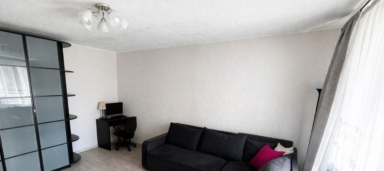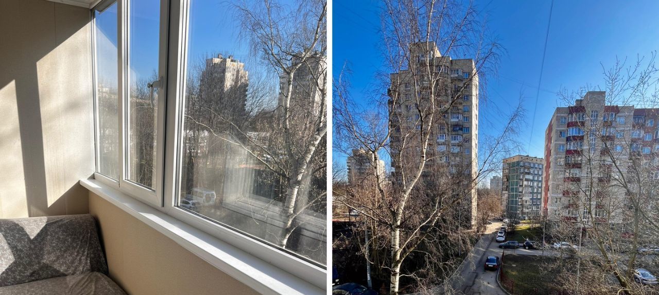 Площадь 33.9 м², жилая 19.1 м², 3 этаж. Ремонт в квартире и подъезде новый. Красивый вид из окон, большой балкон 4 м² с диваном, столом и стульями. Очень зеленый двор, детская площадка.