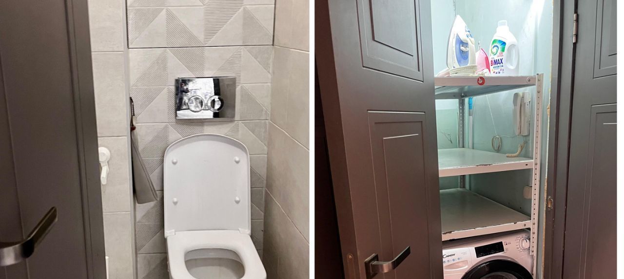Кладовая со стеллажом, очень много мест хранения, стиральная машина, водонагреватель.