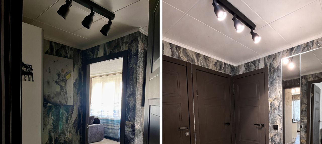 Прихожая: шкаф IKEA с зеркалом, полка для обуви