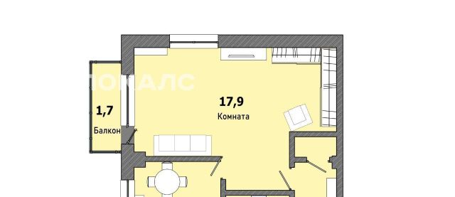 - Комната: 17,9 кв.м