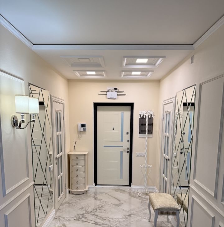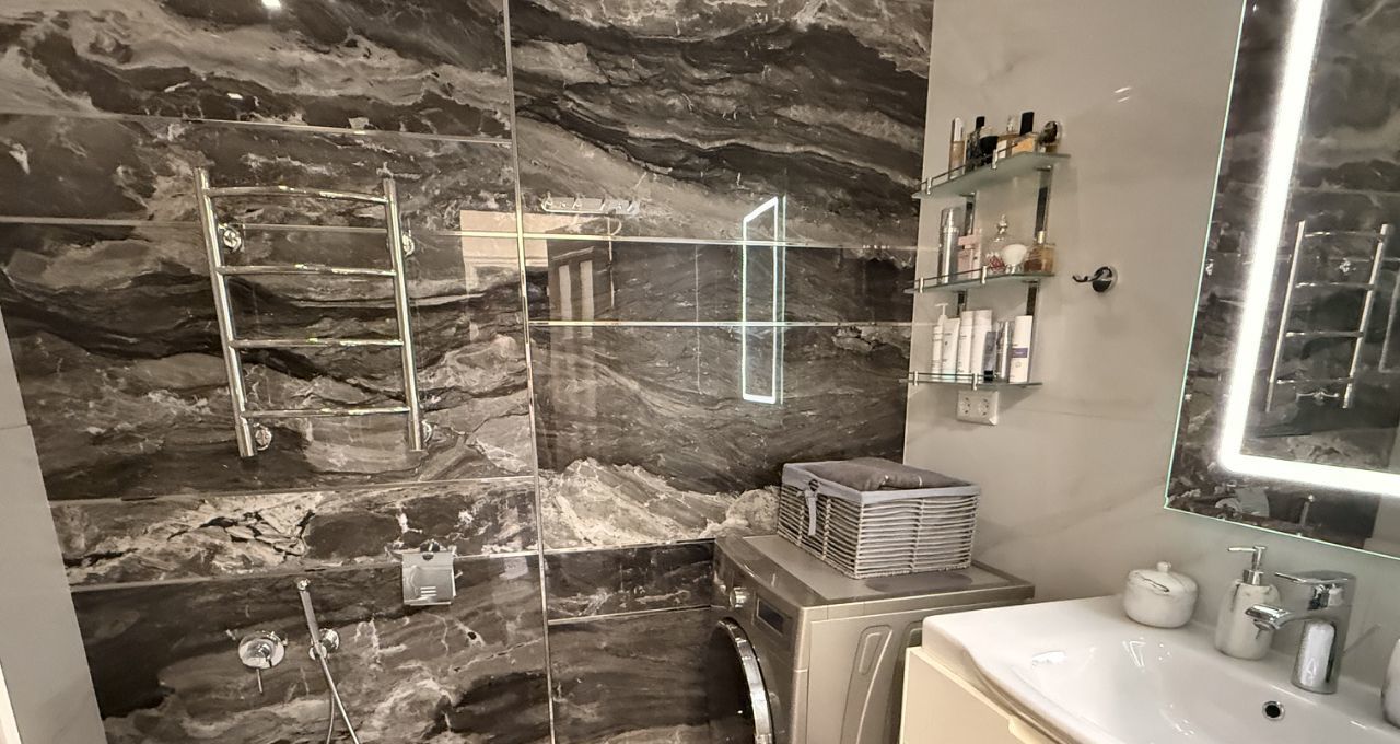 В квартире есть все для комфортного проживания: Гардеробная комната, теплые полы в коридоре, в ванной комнате, кухне и балконе, кондиционер, система аква-стоп, очиститель воздуха.