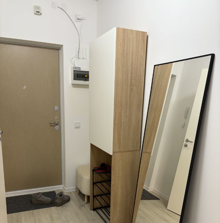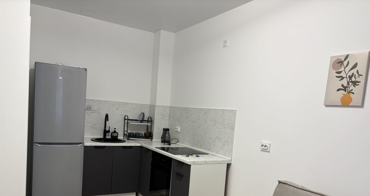 В квартире есть все необходимое для проживания, в том числе: электрический чайник, холодильник, телевизор, духовой шкаф, индукционная плита с посудой, двуспальная новая кровать, постельное белье, фен, зеркало в полный рост, стиральная машина.