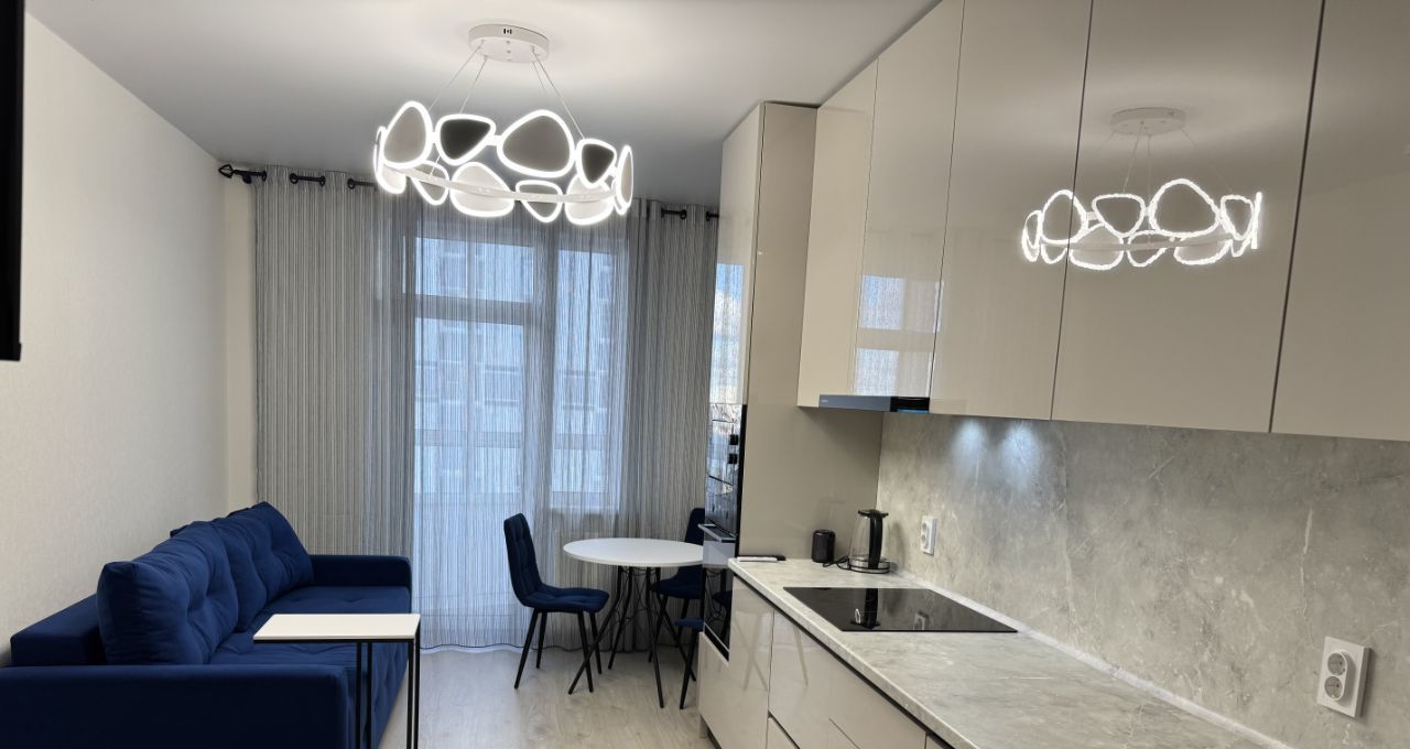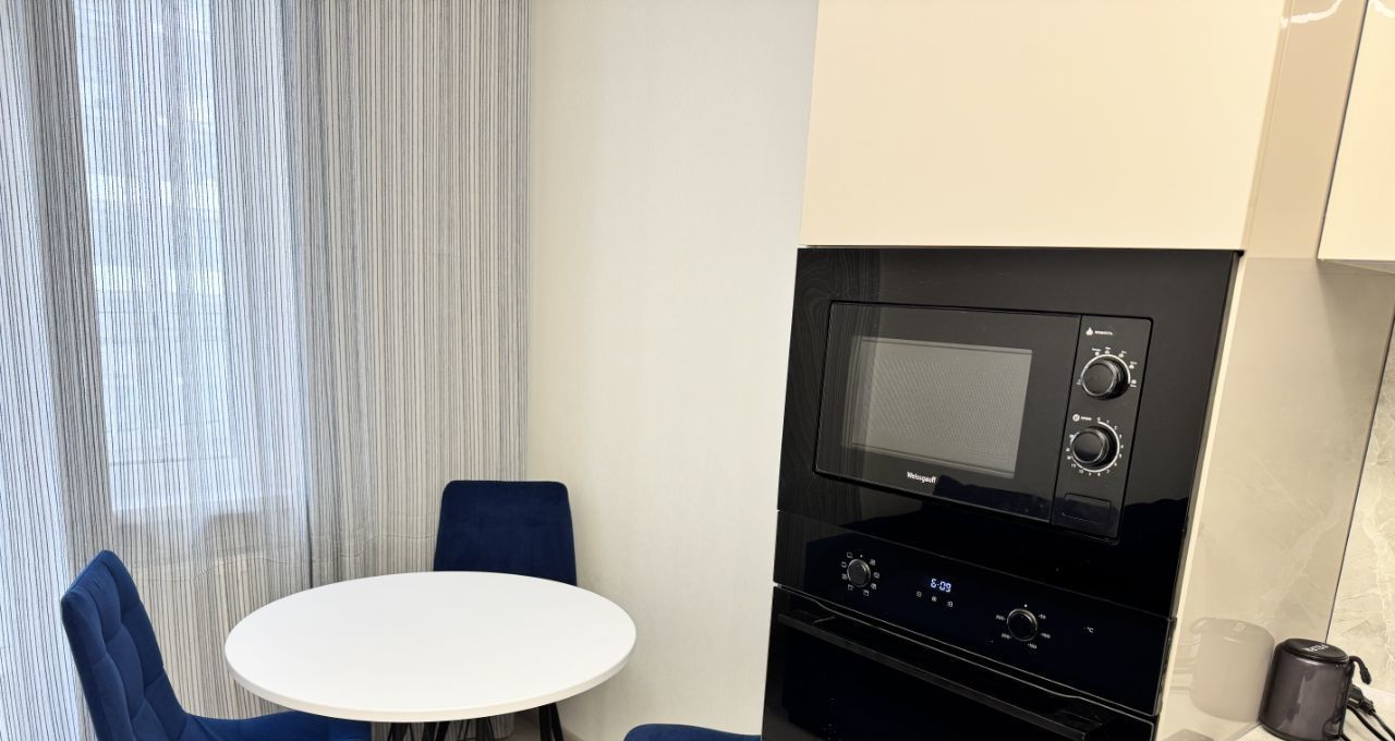 Квартира с евроремонтом, полностью готова к проживанию. В просторной кухне площадью 16,4 кв. м есть всё необходимое: холодильник, посудомоечная машина, духовой шкаф, микроволновая печь,индукционная плита, большой телевизор . В комнате установлена мебель, а в ванной комнате — душевая кабина. Балкон выходит во двор, что обеспечит спокойствие и тишину.