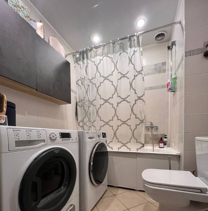 - полностью оборудованная ванная с стиральной машиной LG и сушильной машиной Hotpoint ariston