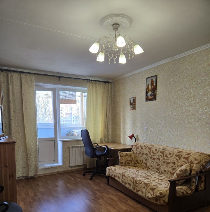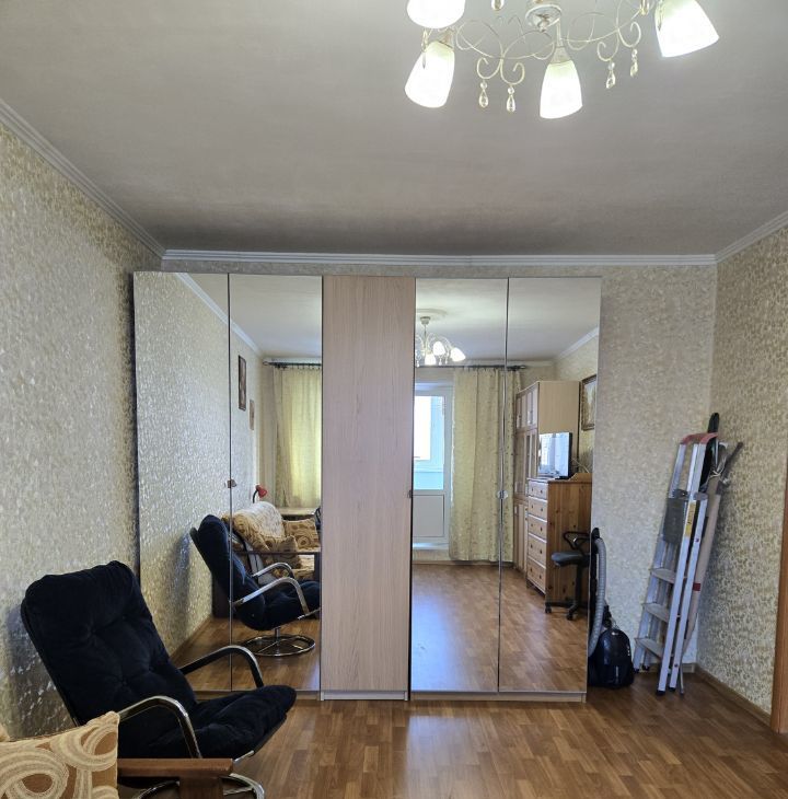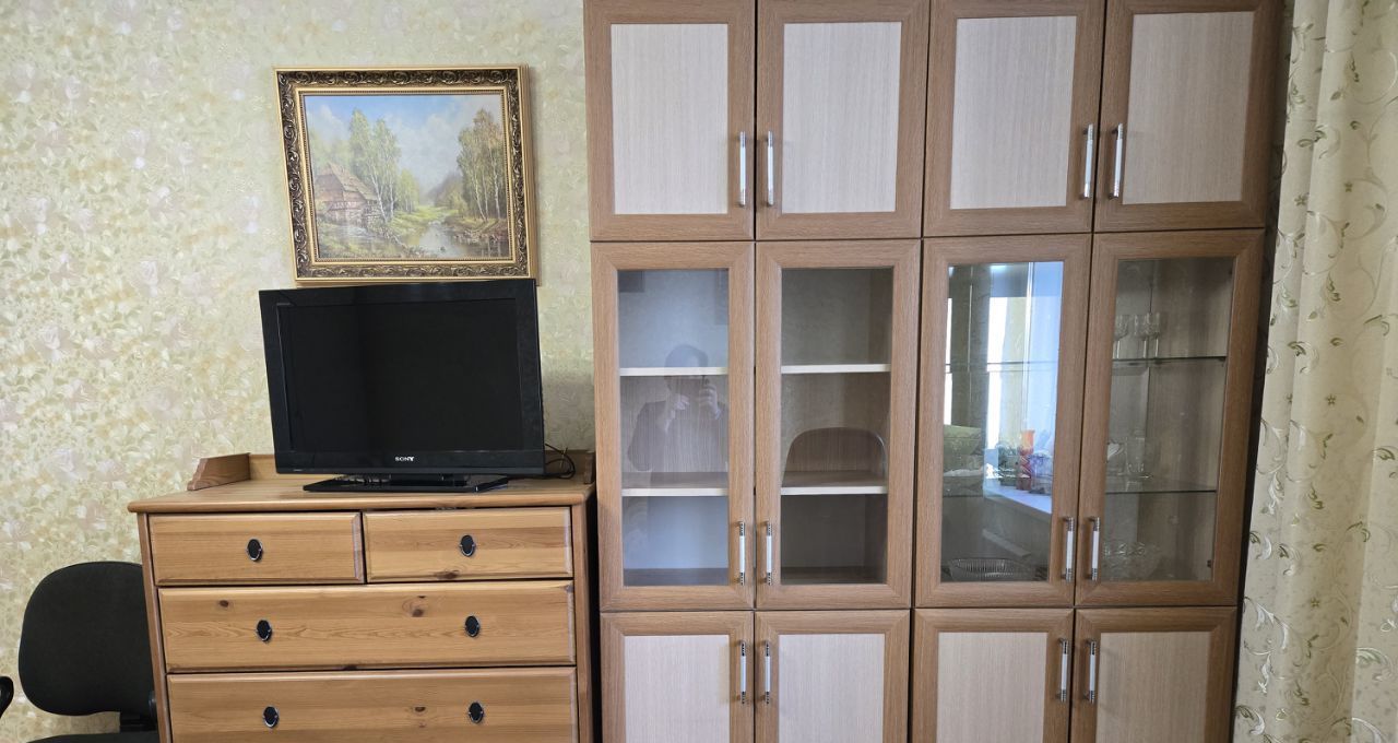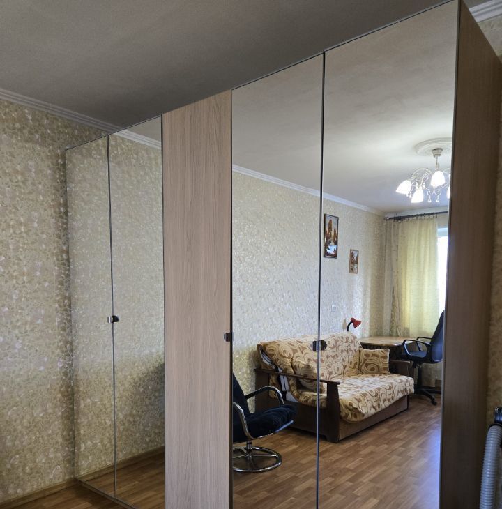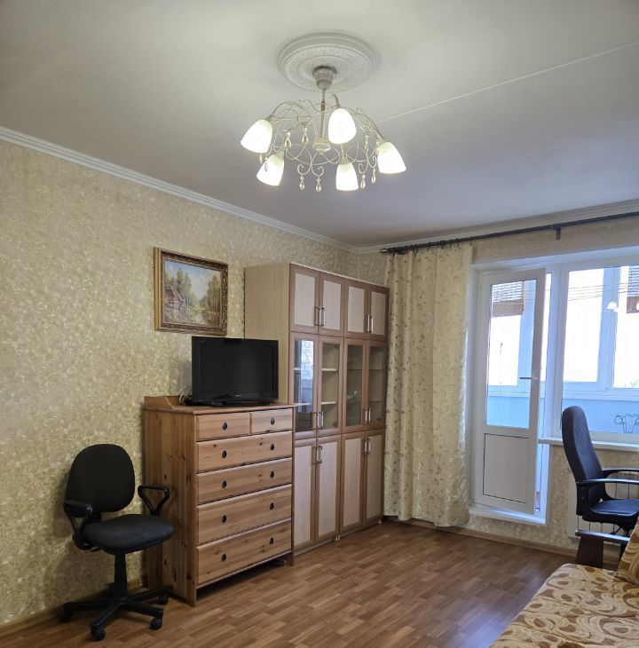 Комната 20м - Диван-кровать 160Х200, шкафы для книг, для посуды, два зеркальных шкафа для одежды, комод +ТВ, рабочий стол с компьютерным креслом. Выход на утепленную лоджию - 6м.