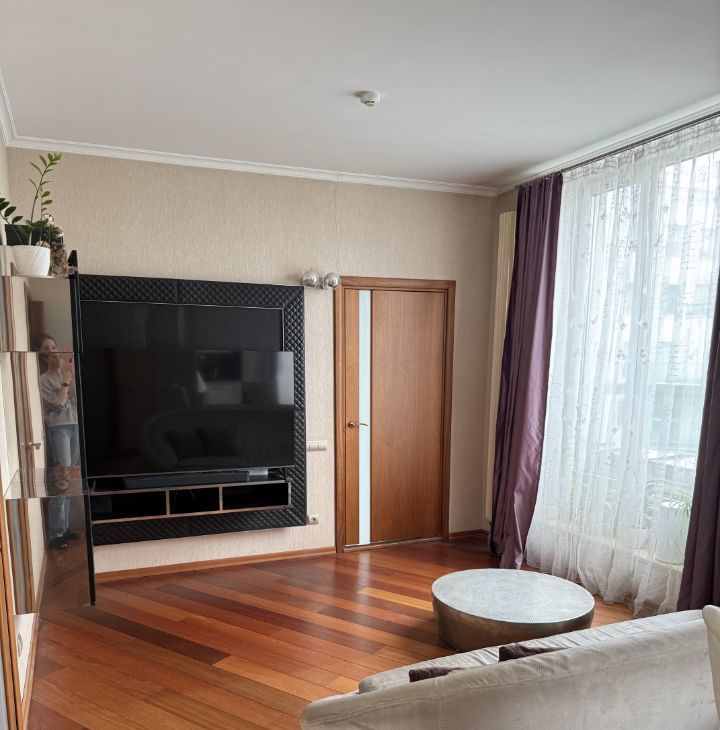 Функциональная планировка: кухня-гостиная с выходом на балкон 27,2 м², отдельная спальня 13,2 м², гардеробная 2,3 м², санузел 4,6 м². В квартире установлены приточно-вытяжная вентиляция с рекуператором, система кондиционирования, видеодомофон. В гостиной — два больших окна, в спальне — панорамное остекление. Квартира в хорошем жилом состоянии.