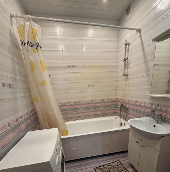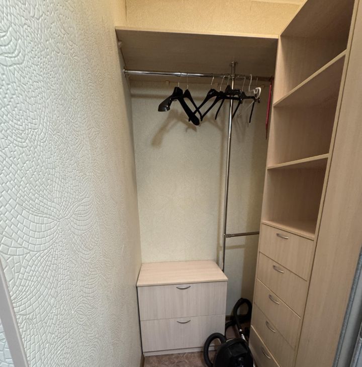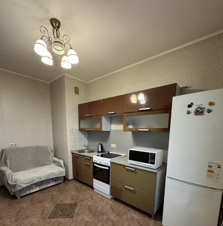В квартире есть вся необходимая мебель для проживания: встроенная кухонная мебель, холодильник, микроволновая печь, стиральная машина, угловой диван, телевизор, стол, кресло-кровать. Для хранения вещей есть гардеробная.