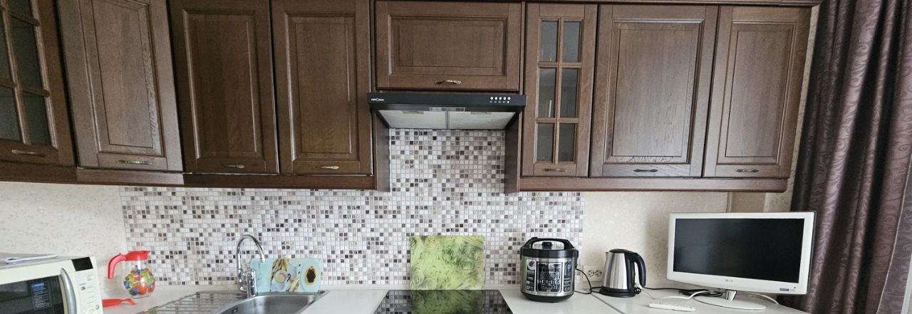 В квартире имеется вся необходимая мебель и техника для проживания: телевизоры, холодильник, микроволновая печь, варочная панель, духовка, чайник, мультиварка, посуда, стиральная машина, 2 раскладных дивана, большой шкаф-купе, шторы блэкаут.
