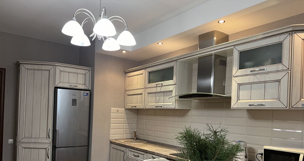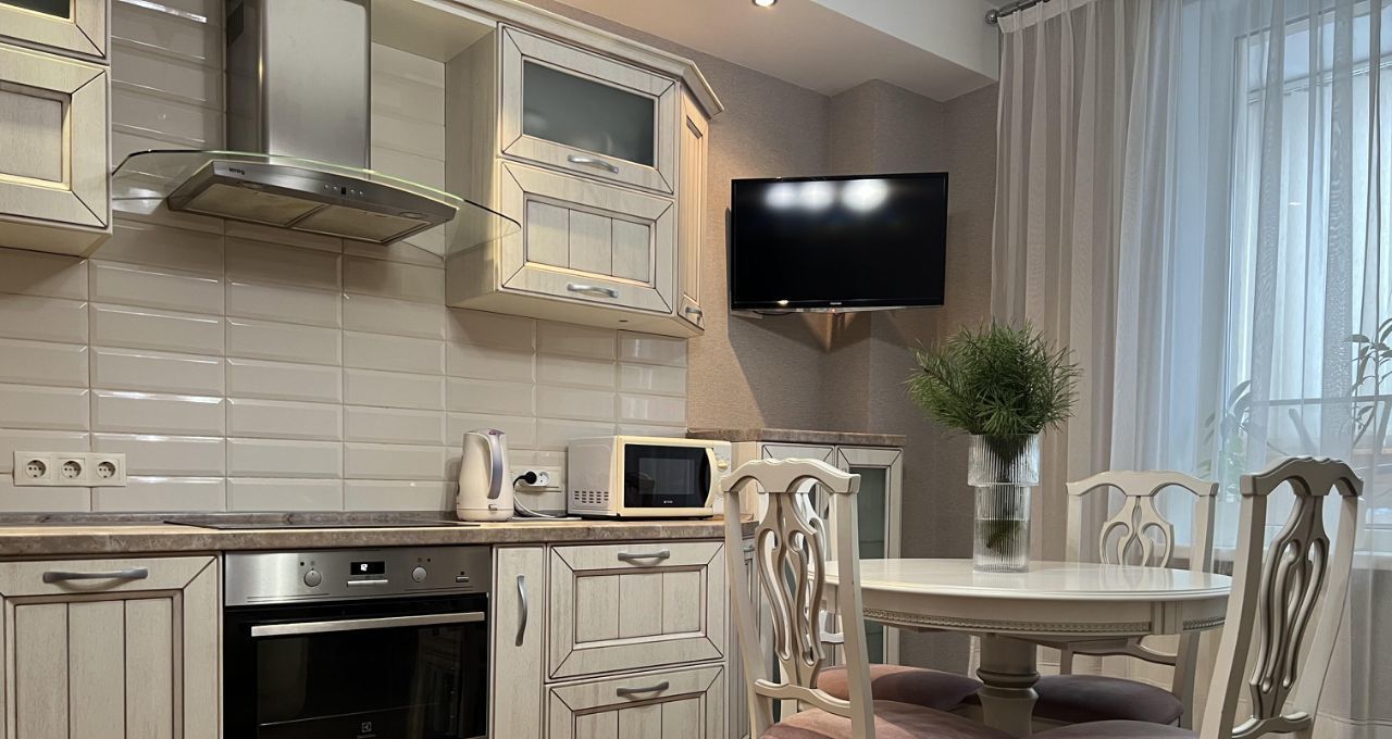 В квартире выполнен качественный евроремонт. Просторная кухня позволяет создать уютное место для семейных ужинов и приема гостей. Санузел совмещенный, оборудован современной сантехникой. Высокие потолки 2.77 метра добавляют ощущение простора. Изюминкой квартиры является балкон, где можно наслаждаться утренним кофе.