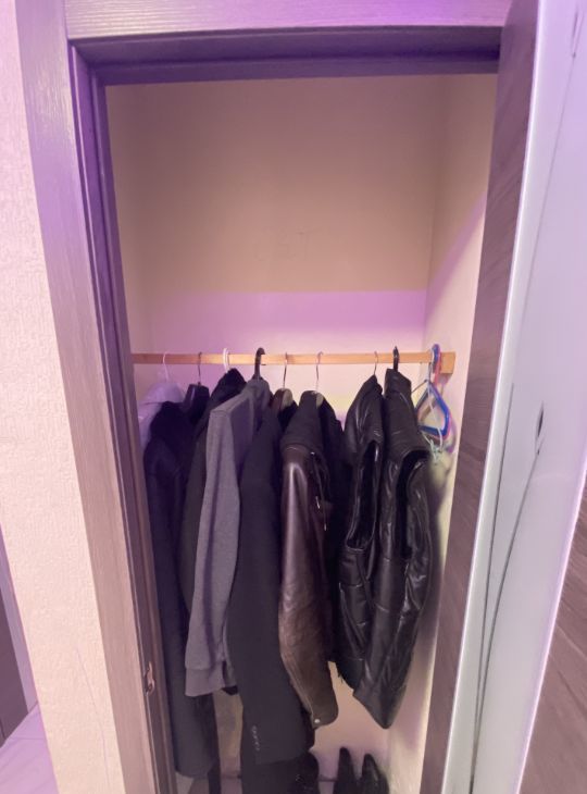 •Встроенный в стену большой зеркальный шкаф купе с отделением для гладильной доски.