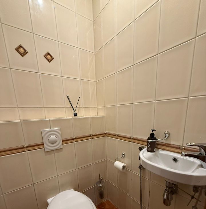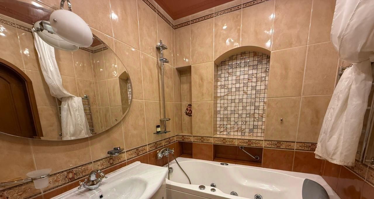 Раздельный санузел. Ванная джакузи, в с/у стиральная машина, гигиенический душ, раковина, шкаф для химии