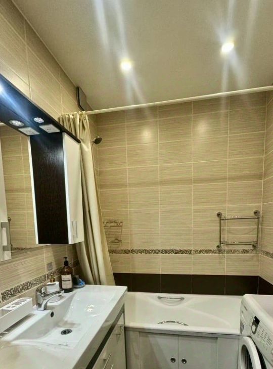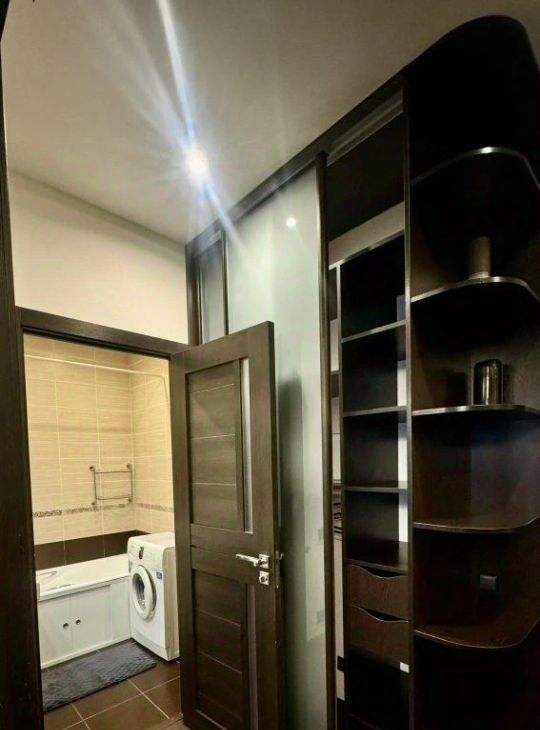 В квартире выполнен современный ремонт, есть вся необходимая мебель как в комнате, так и на кухне. Из техники в вашем распоряжении холодильник, стиральная машина и телевизор. Высота потолков составляет 2.75 метра, что добавляет простора и света. Планировка включает отдельный санузел и вместительную ванную комнату. Также имеется лоджия, где можно насладиться свежим воздухом.