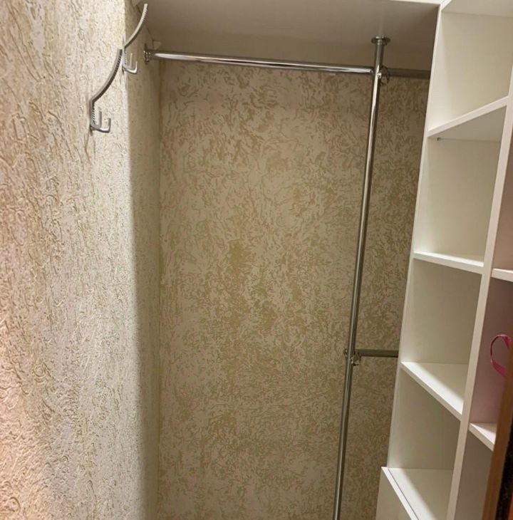 Отдельная гардеробная в комнате, также на входе гардероб для верхней одежды с зеркальным шкафом в пол