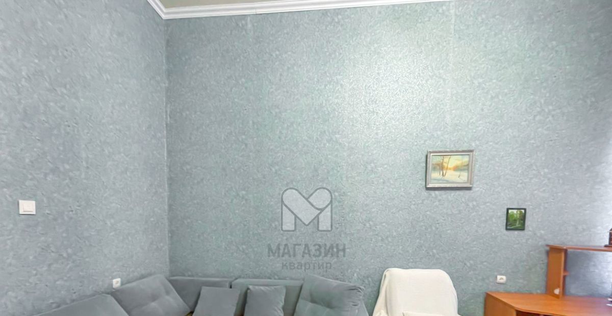 В квартире сделан косметический ремонт. Всё необходимое для комфортного проживания. Большой диван, два кресла, компьютерный стол с офисным креслом. Есть небольшой телевизор.