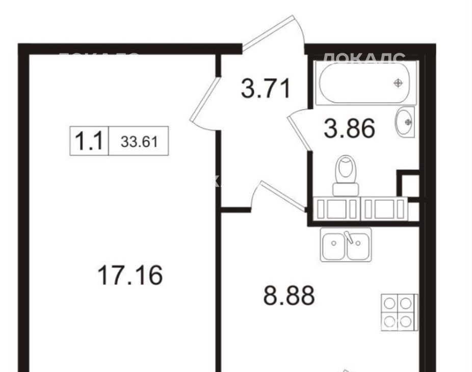 1-к кв. Санкт-Петербург Союзный просп., 4 (33.4 м²)