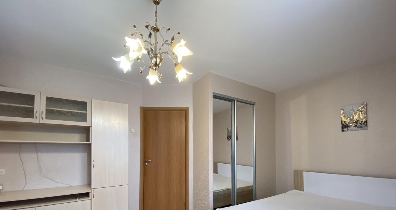 Все необходимое для жизни оборудование и мебель, встроенные шкафы в комнате и прихожей. Продуктовый магазин и остановка общественного транспорта под окнами. Во дворе всегда есть парковка.
