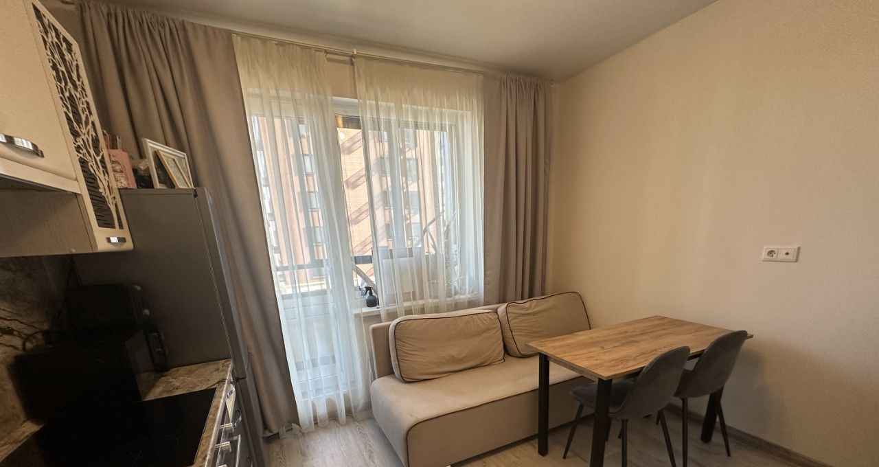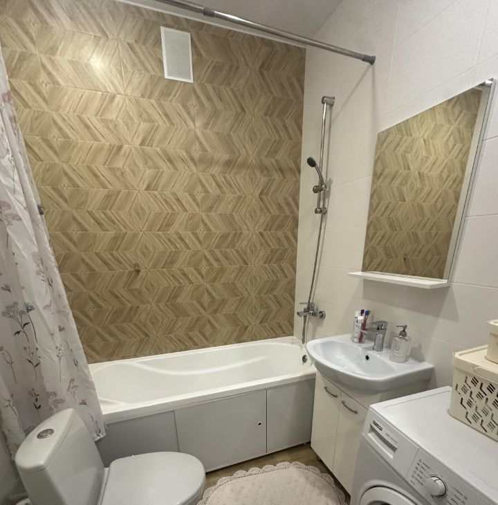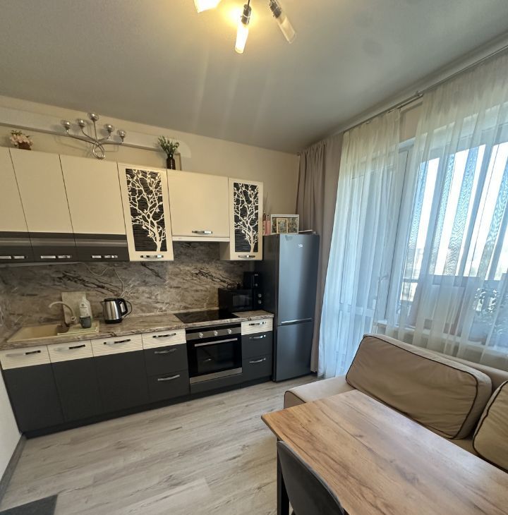 В квартире есть все необходимое для комфортной жизни: современная мебель на кухне и в комнате, а также техника — холодильник, посудомоечная и стиральная машины. Совмещенный санузел оборудован ванной, где можно расслабиться после трудового дня. Просторная лоджия — отличное место для утреннего кофе или вечернего отдыха.