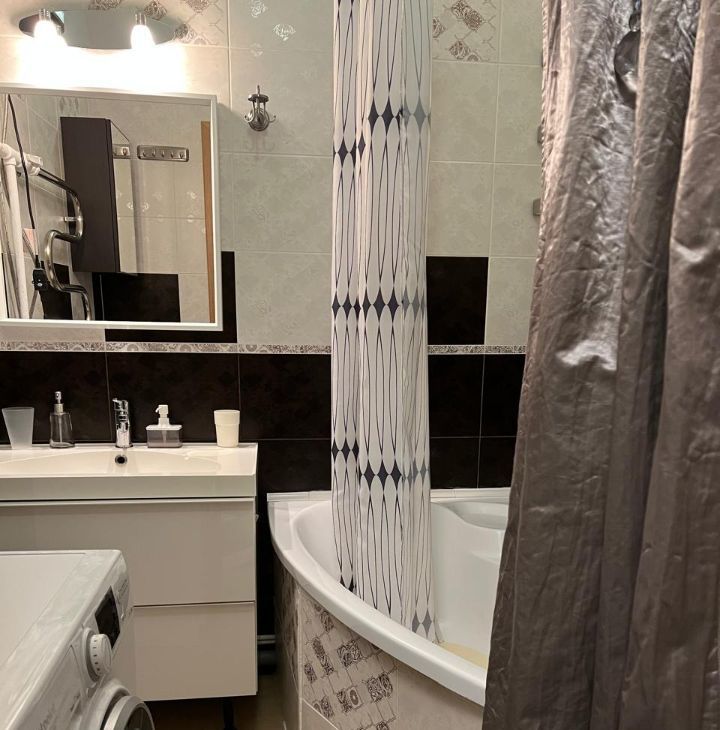 Ванная комната (ванна, раковина, шкаф, стиральная машина). Туалет.