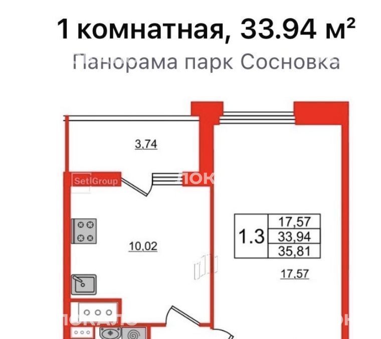 1-к кв. Санкт-Петербург Светлановский просп., 14к1 (35.81 м²)