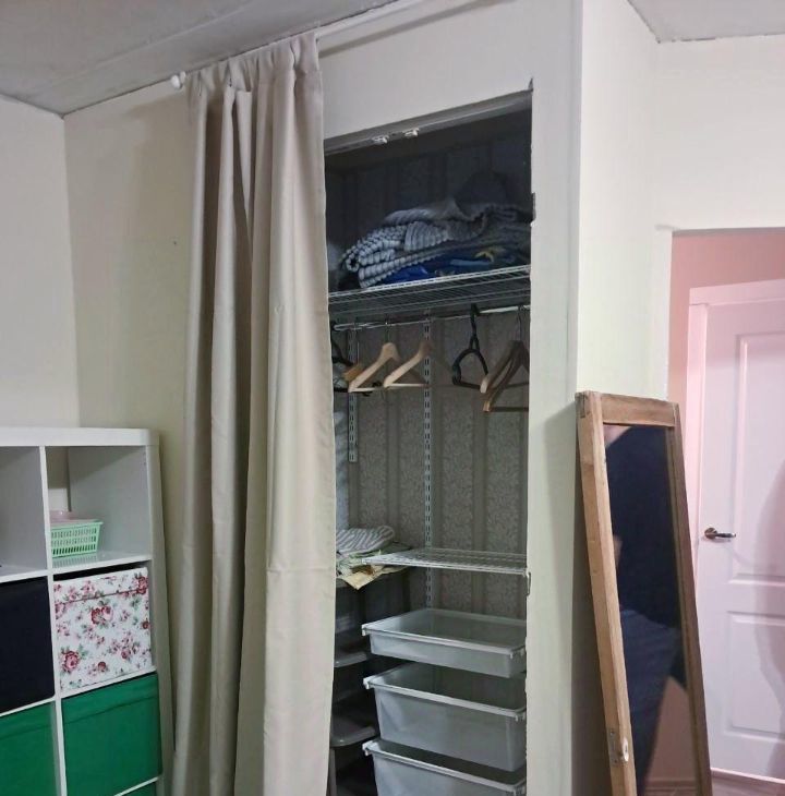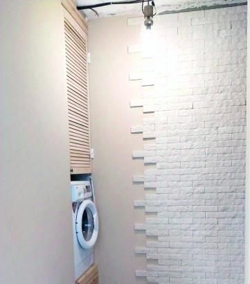 Квартира обставлена мебелью. Есть двуспальная кровать, стиралка, холодильник, шкаф, маленькая гардеробная. Плита электрическая, колонка.