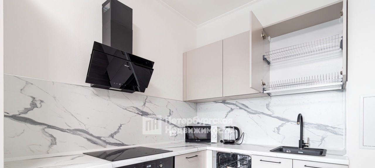 - кухонный гарнитур с бытовой техникой (микроволновая печь, чайник, стеклокерамическая варочная панель, духовой шкаф, холодильник, посудомоечная машина, вытяжка).