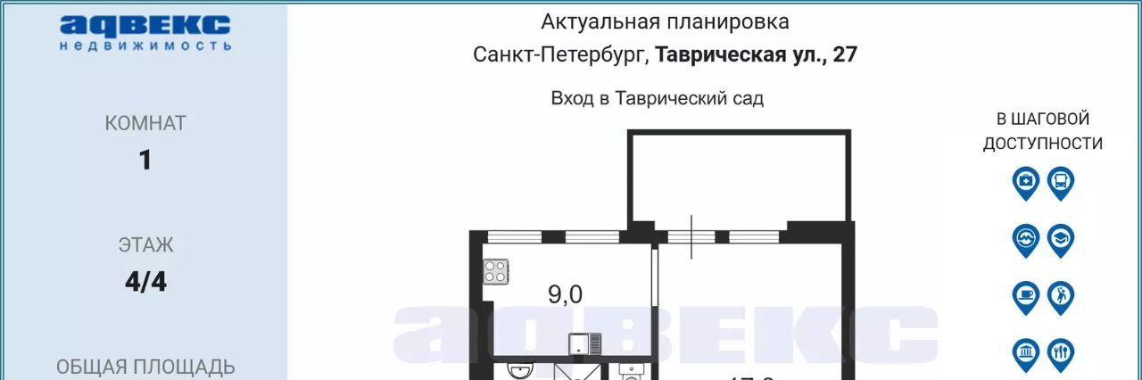 1-к кв. Санкт-Петербург Таврическая ул., 27 (38.3 м²)