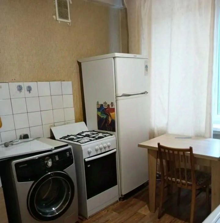 Сдается однокомнатная квартира. На 4 этаже. Общая площадь 32,5 кв.м. Комната- 17 кв.м. Кухня - 8кв.м. Все необходимое для жизни есть. Техника: холодильник, стиральная машина, ТВ.
