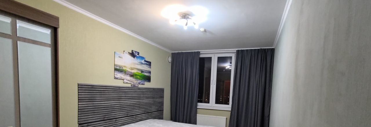 Мебель: двуспальная кровать 180х200, шкаф, прикроватные тумбочки, шторы блэкаут.