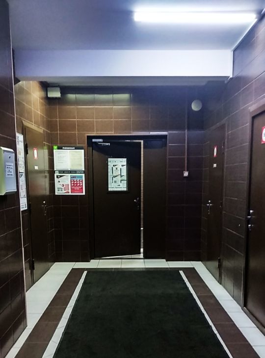В доме две парадные , 4 просторных скоростных лифта Mitsubishi. Холл на 4 квартиры за общей дверью на замке.