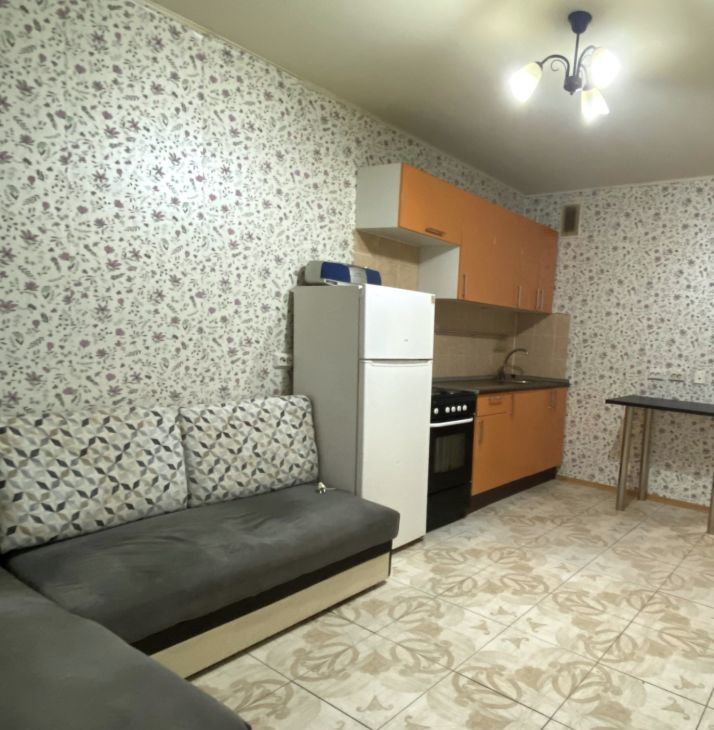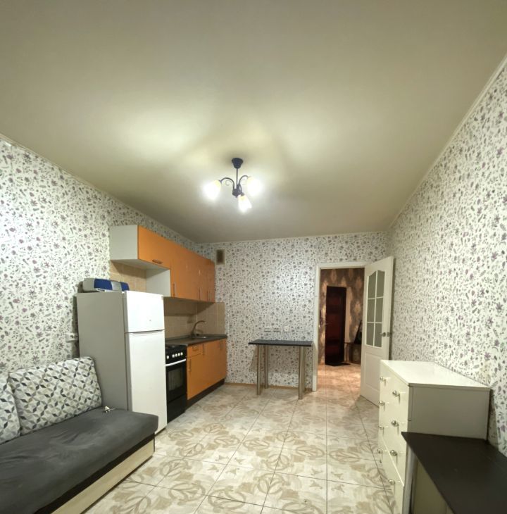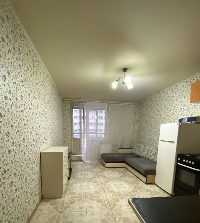 Квартира просторная, светлая с панорамным остеклением лоджии. Общая площадь 46,5 кв.м., площадь кухни 15,1 кв.м., изолированной комнаты 18,3 кв.м. и прихожей 7 кв.м. Также есть: вместительная гардеробная, кухонный гарнитур, холодильник, стиральная машина, телевизор, шкаф, стол, комод, угловой диван, двуспальная кровать и тахта.