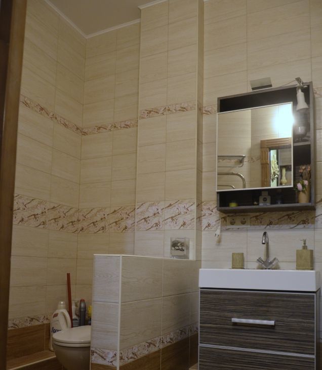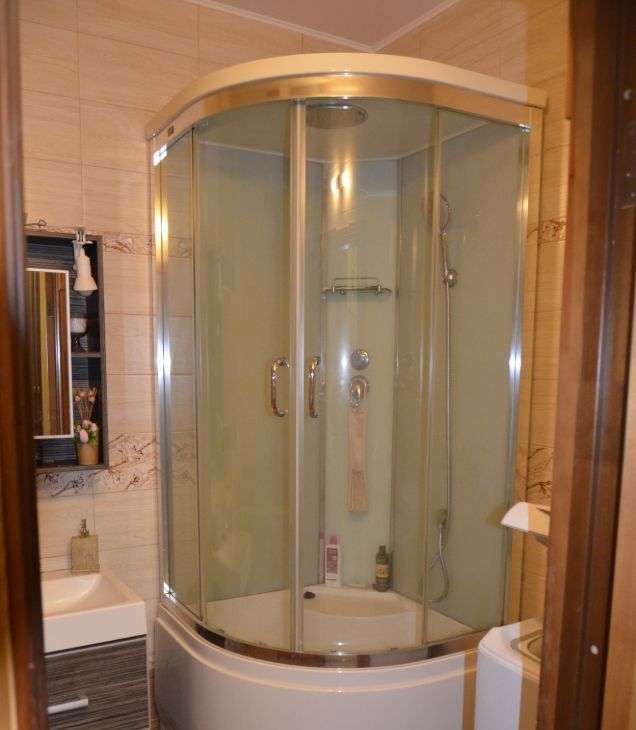 - санузел совмещенный, в кафеле, душевая кабина;