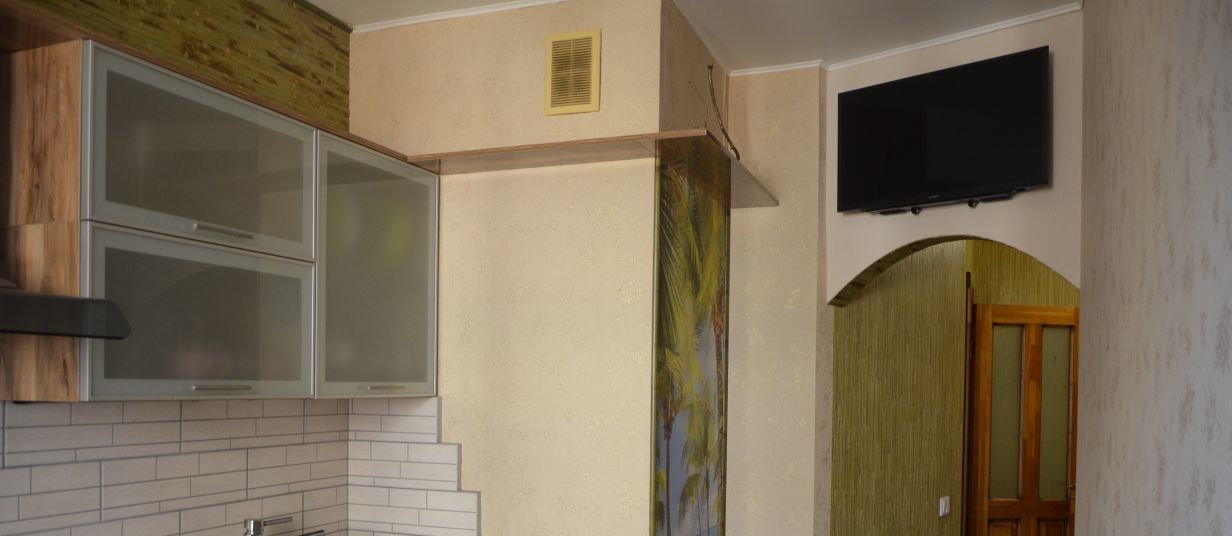 Отличная дорогая бытовая техника. Два ЖК-телевизора: в комнате и на кухне, интернет проведен.
