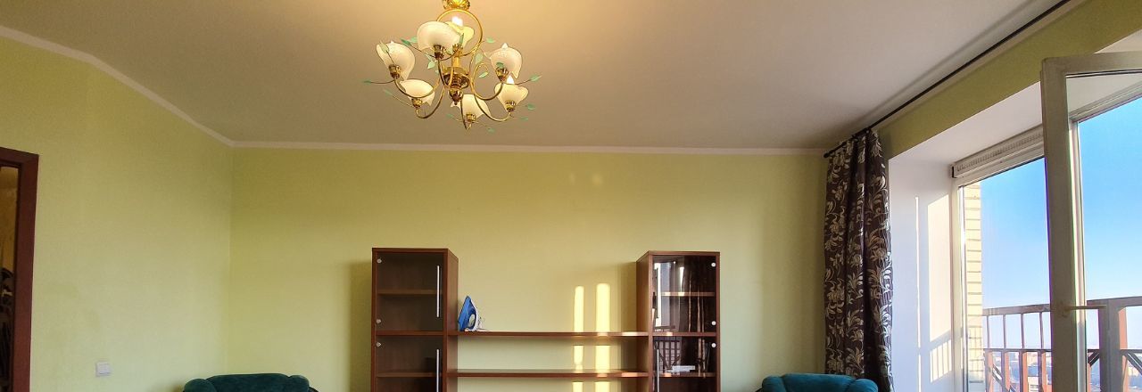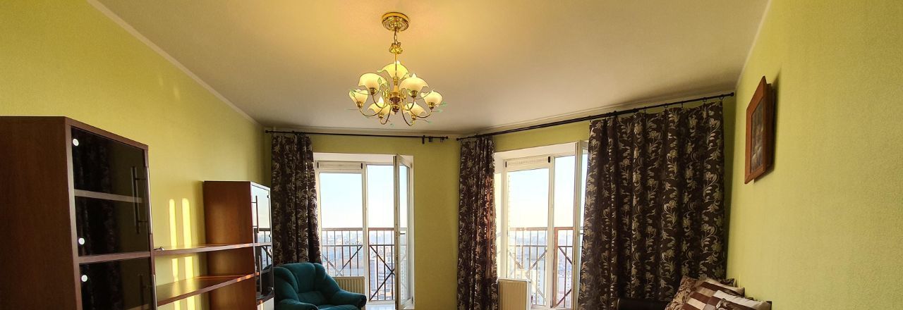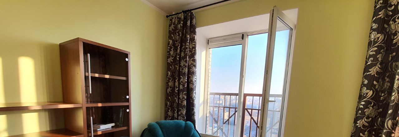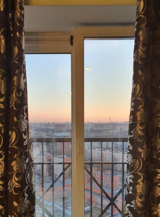 Светлая и чистая квартира с панорамными окнами и впечатляющим видом в сторону центра Петербурга с 25-го этажа.