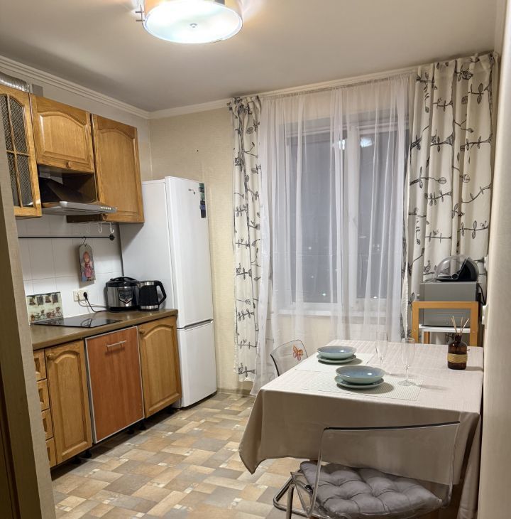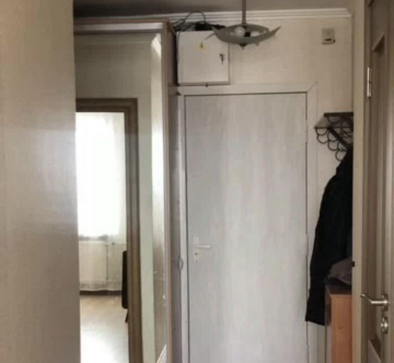 Квартира расположена на 10 (последнем )этаже. Общая площадь 38 квадратных метров, комната 19 квадратных метров, кухня — 8 квадратных метров. Окна во двор , есть балкон.