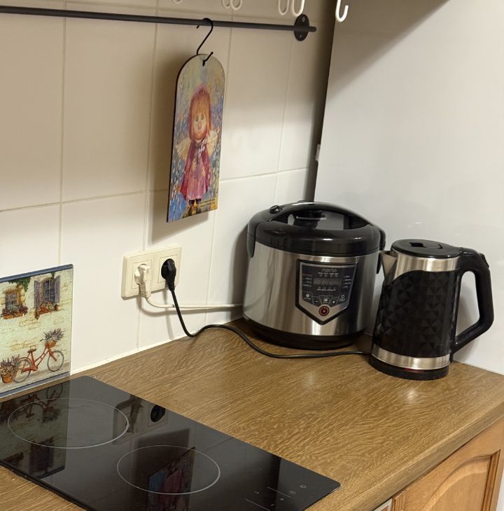 есть вся необходимая техника: холодильник, чайник, микроволновка .телевизор и стиральная машина, новая мультиварка .