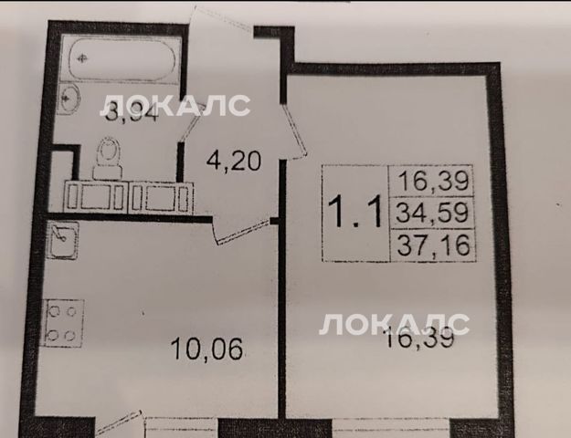 1-комнатная квартира: Санкт-Петербург, проспект Большевиков, 3 (38.4 м²)