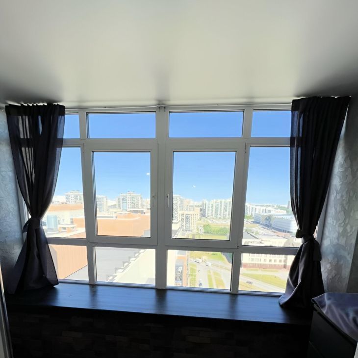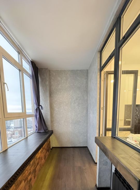 Квартира полностью укомплектована и готова к проживанию. Качественная и тактильно приятная кухня IKEA с доводчиками, встроенный холодильник. На балконе выполнен качественный ремонт, подоконник из натурального массива дуба, вырезался вручную, стены покрыты дорогой декоративной смесью (не обои), пол с подогревом и есть подсветка. В комнате большая двуспальная кровать с изголовьем 160х200 и ортопедический матрас. Вместительный шкаф в коридоре и в комнате. Есть утюг, сушилка электрическая и обычная, микроволновка, стиральная машина. Дополнительно установлена дорогая входная дверь с отличной шумоизоляцией, самая красивая на этаже)