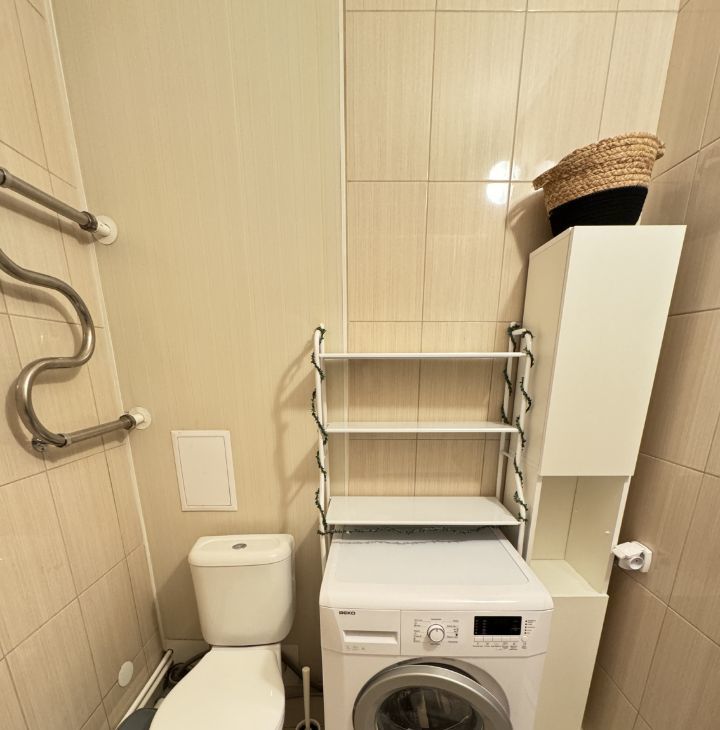 В квартире есть все необходимое для комфортного проживания. Техника: холодильник, эл.плита с духовкой, вытяжка, СВЧ, стиралка. Мебель: каркас кровати, диван, шкаф, комод, стол и стулья, кухонный гарнитур, мебель в прихожей. Квартира не перегружена мебелью.