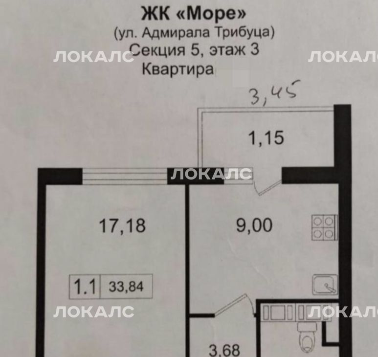 1-к кв. Санкт-Петербург ул. Адмирала Трибуца, 5 (34.1 м²)