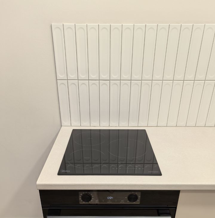 Светлая кухня-гостиная. Здесь приятно готовить и проводить вечера. Вся техника новая: индукционная плита, духовой шкаф, холодильник, посудомоечная и стиральная машины, микроволновка. Кондиционер будет установлен уже этой весной.
