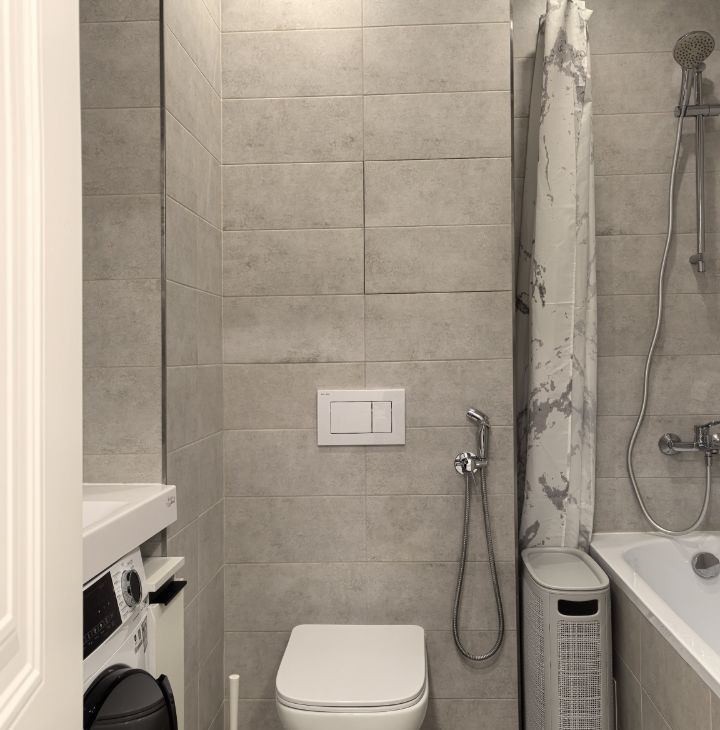 Совмещенный санузел с современной отделкой.
