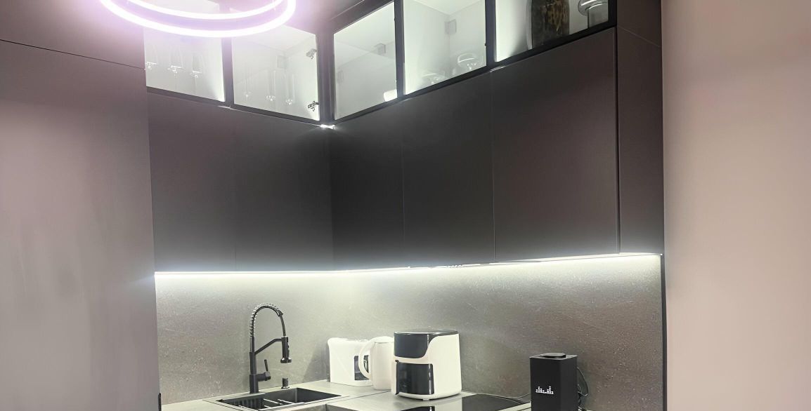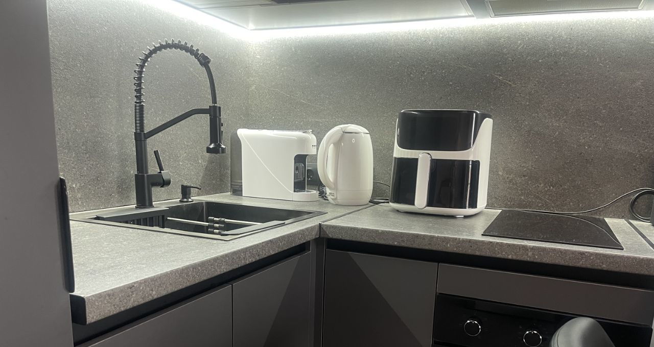 В квартире выполнен дизайнерский ремонт.Есть 2 больших шкафа. Есть стиральная машинка, кофемашина и другие необходимые бытовые приборы. У квартиры есть балкон.