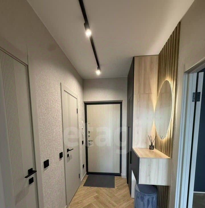• Просторная прихожая с вместительным шкафом, зеркалом с подсветкой и пуфиком для удобства.