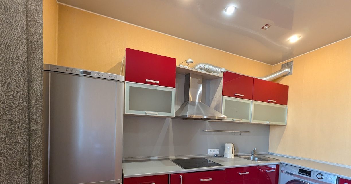 Кухонный гарнитур, двух/камерный холодильник, стиральная машина, варочная поверхность.