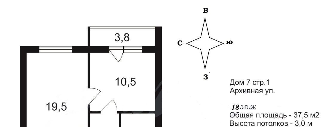 1-к кв. Санкт-Петербург ул. Архивная, 7 (38.0 м²)
