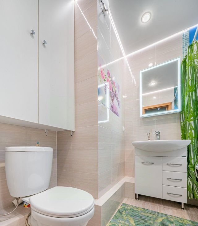 Квартира не перегружена громоздкой мебелью и массивными конструкциями, все выполнено в светлых тонах, поэтому даже на небольшой площади ощущается простор и уют. При этом есть все необходимое и даже больше.