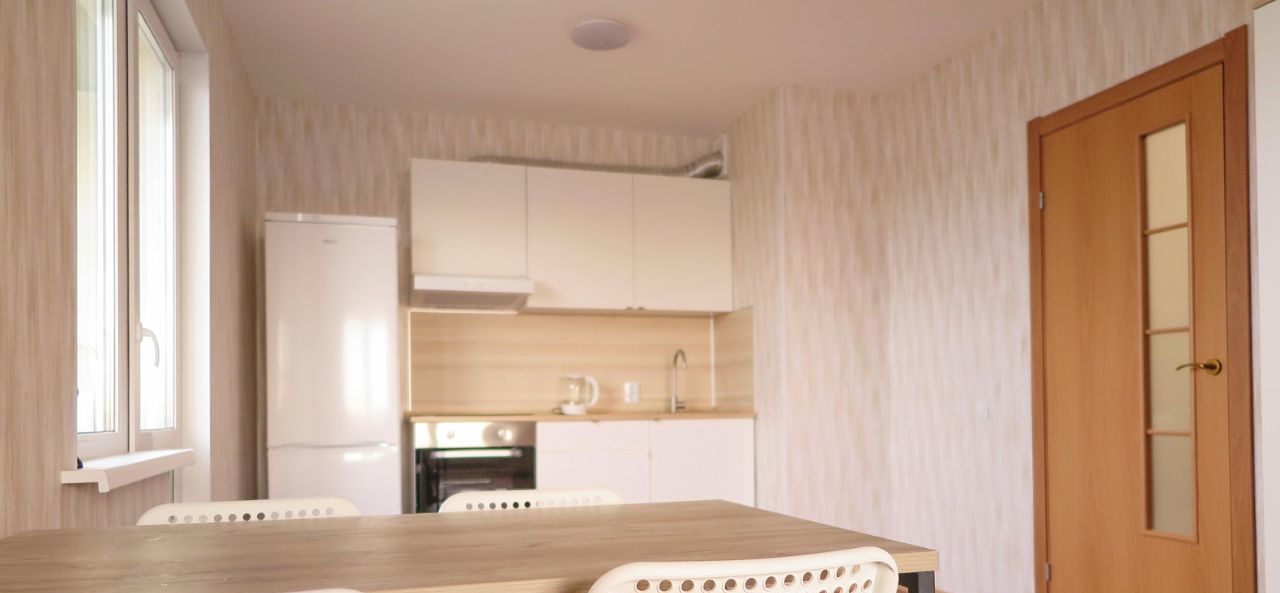 Продается уютная однокомнатная квартира (евродвушка) с современным ремонтом, расположенная на 17 этаже монолитного дома, построенного в 2021 году. Просторная кухня площадью 25 м² оборудована необходимой бытовой техникой. Есть водонагреватель. Из окон открывается приятный вид на солнечную сторону, что обеспечивает хорошее естественное освещение.