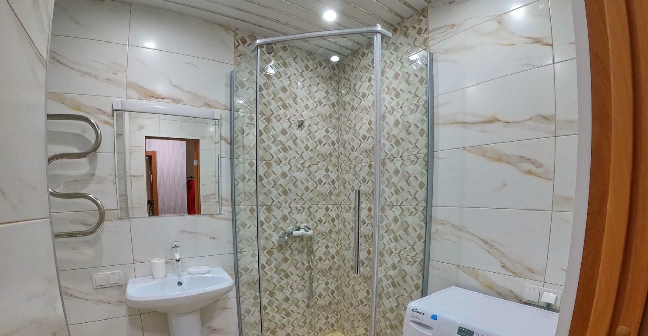 Санузел оснащен теплым полом, что добавляет комфорта в холодное время года. В доме предусмотрены два пассажирских и один грузовой лифт. Для детей во дворе обустроена игровая площадка.