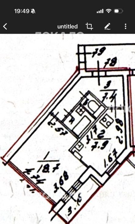 Общая площадь квартиры 38 м2, площадь комнаты составляет 19 м2, площадь кухни- 10 м2.