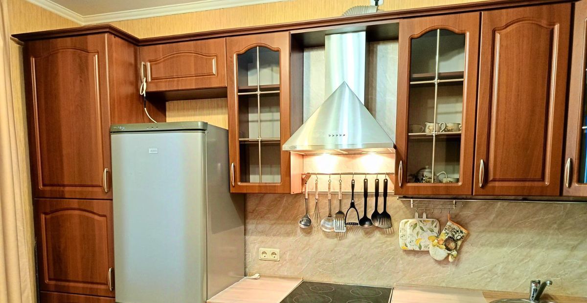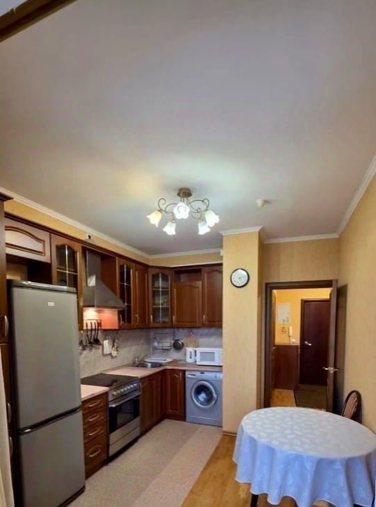 В квартире есть вся необходимая мебель и техника для комфортного проживания. Она сдаётся на длительный срок для пары без детей и животных.